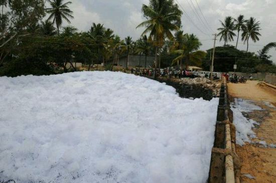 繼印度Varthur湖面因污染嚴(yán)重泛起泡沫之后,現(xiàn)在輪到Bellandur湖附近的居民擔(dān)心了。這些泡沫甚至還燃起了火苗,讓當(dāng)?shù)鼐用窈吐愤^(guò)的人都非常驚慌。 在過(guò)去幾周,班加羅爾的Bellandur湖被幾英尺厚的白色有毒泡沫覆蓋,遠(yuǎn)看就如白雪一般。而在白色泡沫之下,是被化學(xué)物質(zhì)和污水污染而變成黑色的湖水。附近的濕地過(guò)去對(duì)湖水起到了過(guò)濾的作用,卻都已經(jīng)在開(kāi)發(fā)過(guò)程中被破壞了。失去了具有天然凈化作用的濕地,這些湖的污染變得很難控制。 當(dāng)?shù)匚廴局卫砭值墓賳T表示,這是第一次人們觀察到這種現(xiàn)象。